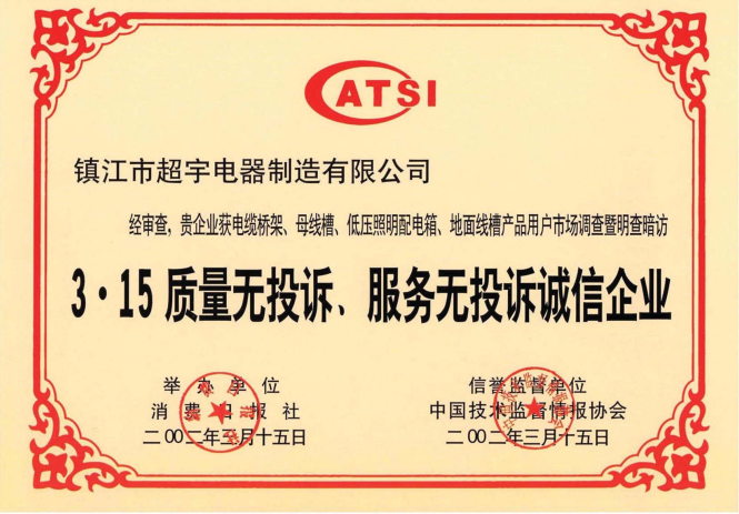 江蘇超宇電氣有限公司地處繁榮富饒的長江金三角,座落在聞名遐邇的生態(tài)示范區水上花園城市--揚中。公司成立于一九九六年,經過二十多年的發(fā)展進步,目前已形成專業化生產制造規(guī)模。 公司現有注冊資金3.0... ... [詳細>>]